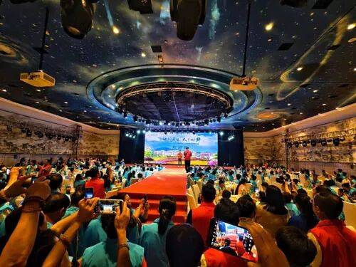 9月26日,活动进入核心环节 —— 旅游研讨会。上午8时许,国内外游代表有序入场,伴随着编钟与交响乐融合的《盛世华章》,董事长冯柏乔博士、董事总经理刘淑莲博士携高管团队登场,全场掌声雷动。主持人以“龙门佛光映照千年智慧,洛河碧波激荡时代潮声” 开篇,将金科十七载发展历程与洛阳古都文脉紧密联结,强调本次研讨会既是对精英团队的荣耀表彰,更是 “承载健康环保使命” 的初心践行。