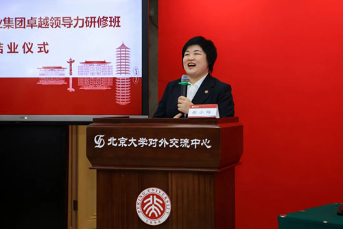 随后,张红总经理发表了总结讲话。她感谢北京大学十余年来在公司市场高级人才培养方面给予的大力支持和帮助,充分肯定了研修班和学员学习成果,指出课程设置科学,充分体现了市场需求,课程专业性不断提升。通过系统培训,学员们的政治素养、理论水平、领导能力和综合素养都得到了很大提升。她希望全体学员勇担时代使命、坚持笃行实干,将在北大汲取的专业知识与思想智慧转化为推动企业高质量发展的生产力,为2035年健康中国建设目标的实现注入更强劲的 “新时代” 力量。