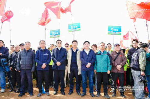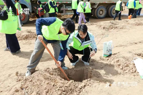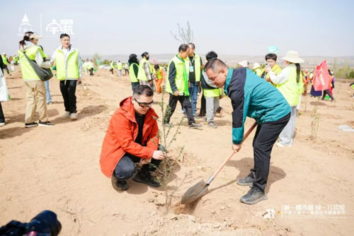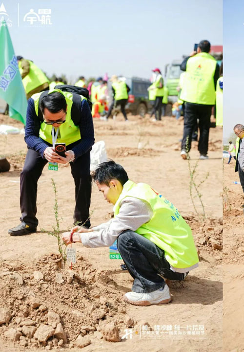 活动当日,和林格尔县春风轻拂,带来丝丝暖意。国家林业和草原局相关领导、中国治沙协会相关领导、国内知名高校领导和科研专家,内蒙古宇航人集团董事长邢国良、总裁王尚义,内蒙古宇航人高技术产业有限责任公司董事长于晓辉,宇航人集团董事、执行总裁李明阳等众多嘉宾齐聚一堂,共同出席了植树节的启动仪式(特邀嘉宾名单见文末)。现场,他们都亲手种下一棵饱含深意的沙棘树,以实际行动为祖国的北方大地增添了一抹生机勃勃的绿色。